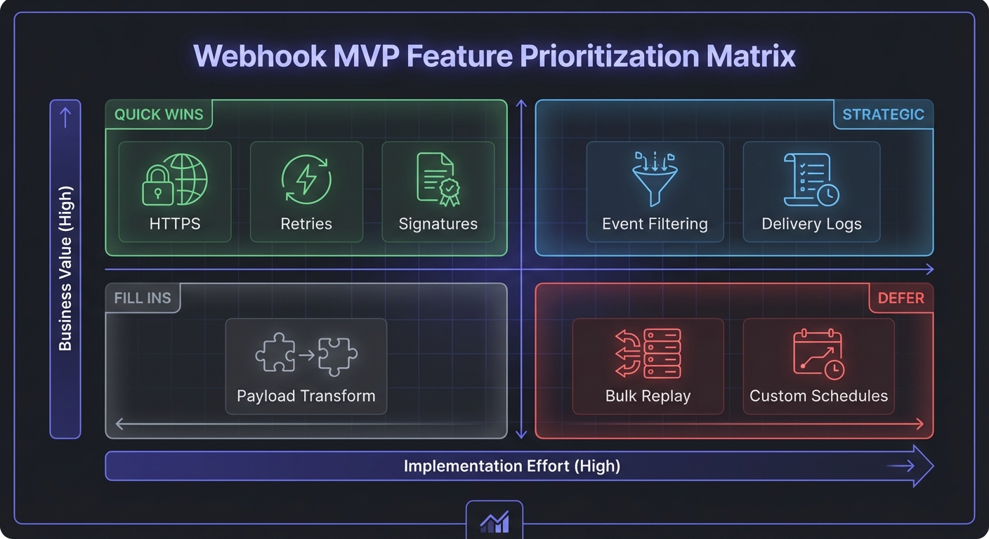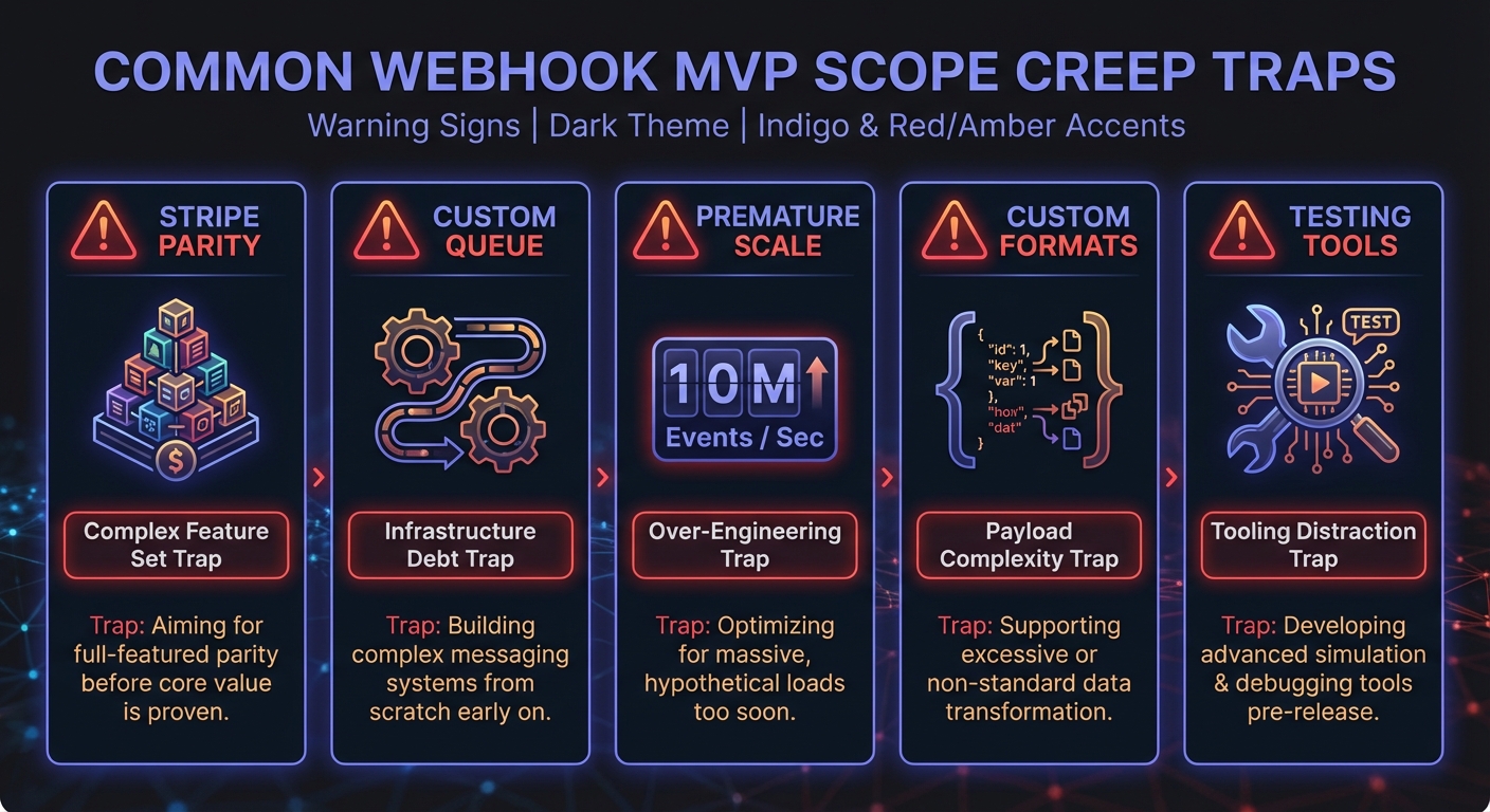 This guide covers what belongs in MVP, what to defer, how to prioritize events, and avoid the scope creep traps that derail webhook projects.