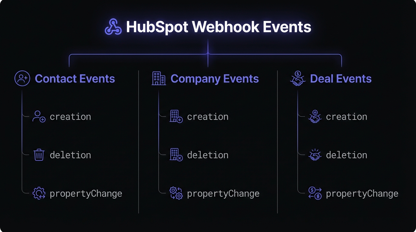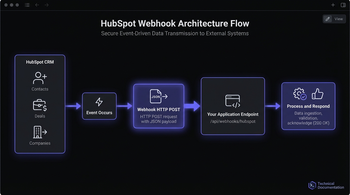 HubSpot webhooks enable real-time CRM workflows. Success requires understanding subscriptions, handling batched events, and verifying signatures.