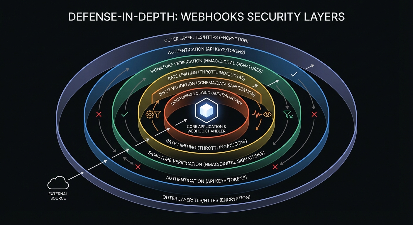Webhooks expose a public endpoint—attackers can send forged requests, inject payloads, or replay legitimate requests. A compromised payment webhook could result in fraudulent order fulfillment. An insecure deployment webhook could allow attackers to inject code into production. Security is not optional.