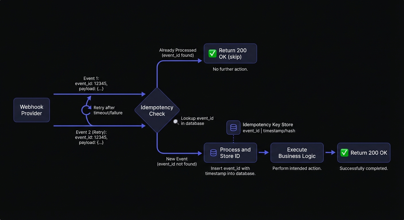 Your webhook endpoint processes a payment, then the same payment again—now your customer is charged twice. Idempotency prevents this scenario. It's critical for webhook architecture yet often overlooked until failures occur.