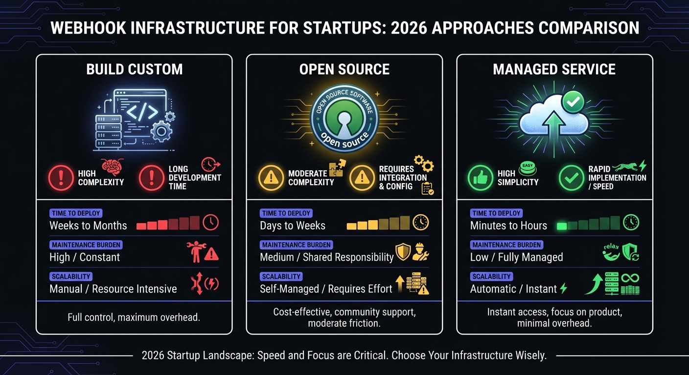 Organizations evaluating webhook infrastructure today have three primary paths—but a fourth option is emerging.